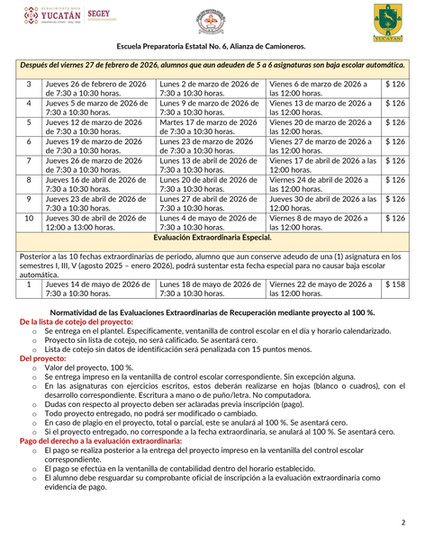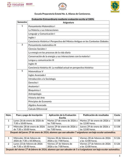 Por este medio publicamos el calendario de evaluaciones extraordinarias para regularizar asignaturas del semestre impar, agosto 2025 - enero 2026, con las especificaciones, requisitos y normas correspondientes.
