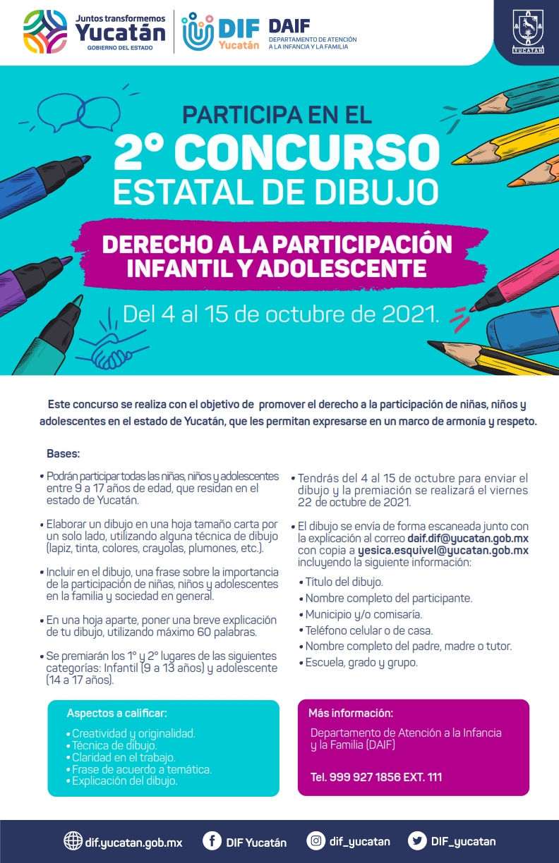 Participa en el 2° Concurso Estatal de Dibujo.Escuela Preparatoria Estatal No. 6 Alianza de Camioneros7 oct 20211 Min. de lecturaDel 4 al 15 de octubre del 2021, consulta las bases y expresate dibujando.